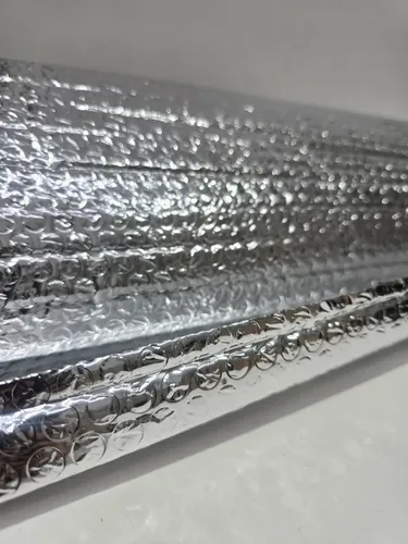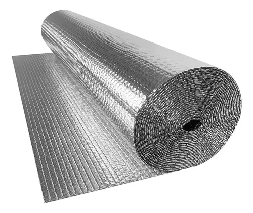Aislante reflectivo compuesto por una lamina central de burbuja de polietileno, revestida en ambas caras con aluminio.