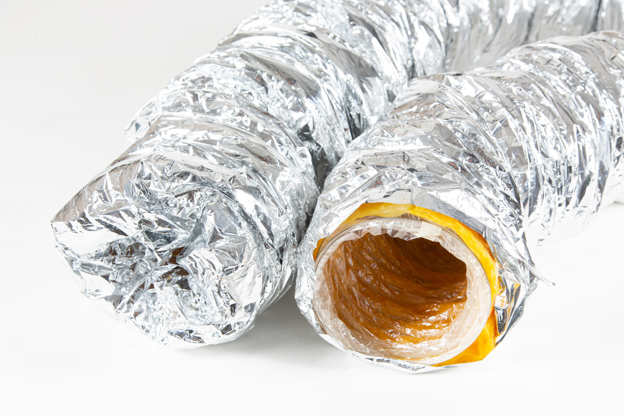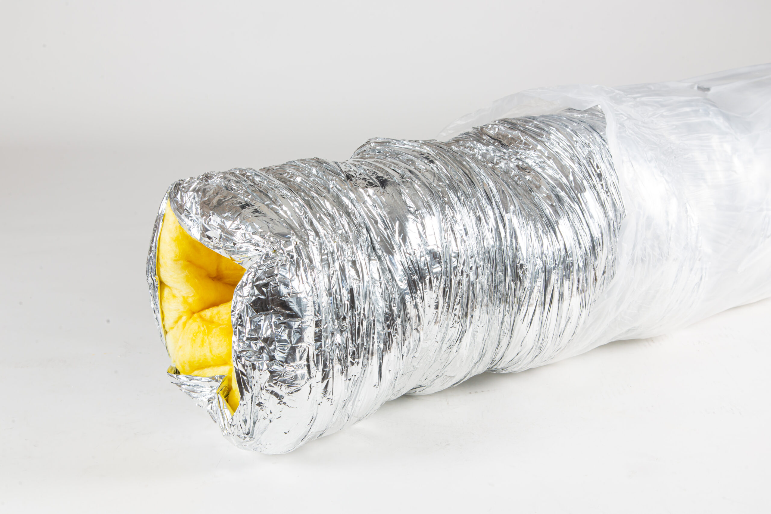 Conducto flexible con aislación de lana de vidrio.