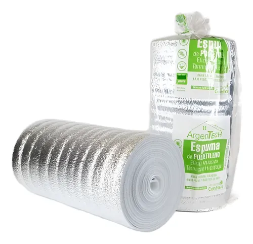 Espuma de polietileno que tiene incorporada una lamina reflectiva de aluminio puro en una de sus caras. No colocar en aleros, galerías o galpones sin muros perimetrales que protejan de la reflexión indirecta de los rayos UV.
