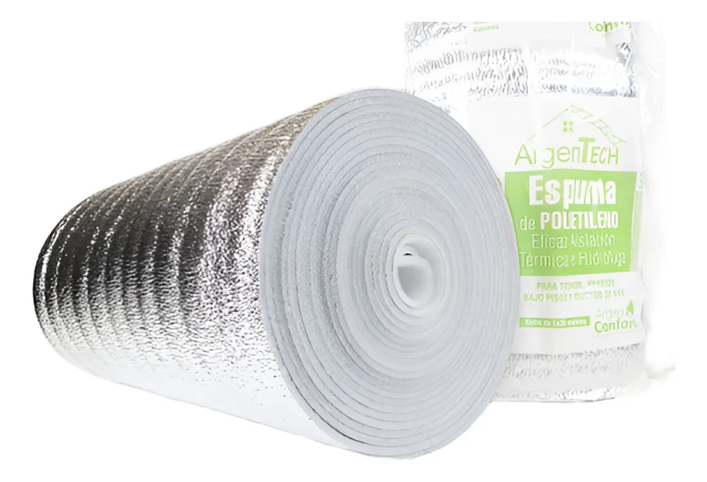 Espuma de polietileno con film aluminizado en una de sus caras y con retardante de llama. Soporta rangos térmicos entre 40 ºC y 85 ºC, manteniendo su forma y espesor.