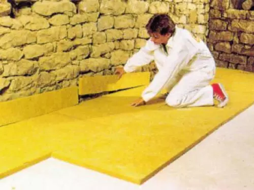 Panel rígido de lana de vidrio de alta densidad y resistencia mecánica. Diseñado para el aislamiento acústico de ruidos de impacto.